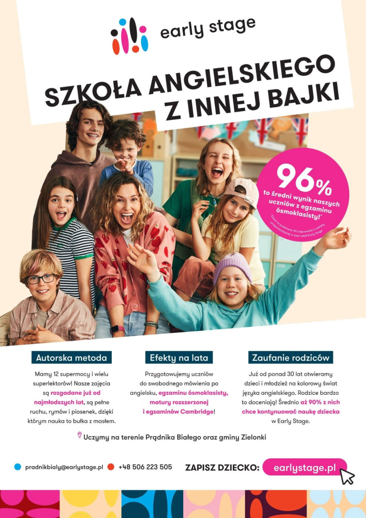 Dołącz do Early Stage w szkołach i przedszkolach w Prądniku Białym i gminie Zielonki! Nasze lekcje angielskiego to połączenie intensywnej nauki z zabawą, które rozweselą i zmotywują każde dziecko. Zaangażowani i pełni pasji lektorzy dbają o atmosferę i postępy uczniów. Nauka angielskiego z Early Stage to gwarancja efektywności i radości!