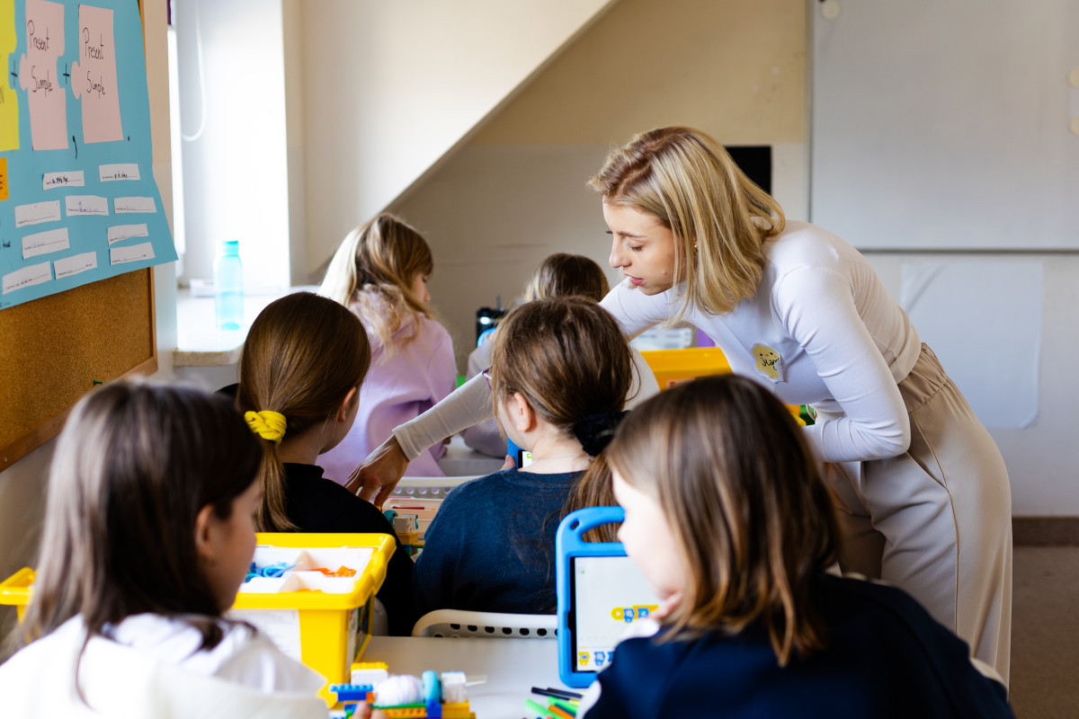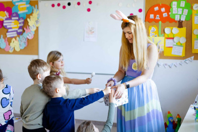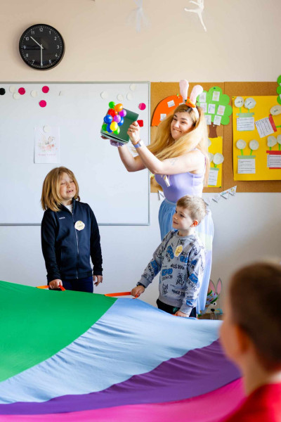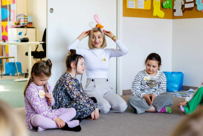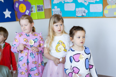 Nasza wykwalifikowana kadra nauczycielska zaprasza wszystkich chętnych w wieku od 3 do 19 lat na autorski kurs angielskiego dla dzieci i młodzieży w Łomiankach w szkole Early Stage. Doświadczeni lektorzy pracują z pasją i zaangażowaniem, tworząc bezpieczną i przyjazną atmosferę, do której chce się wracać. Lekcje angielskiego dla dzieci w Łomiankach oparte są na naszej metodzie nauczania, w której kładziemy nacisk na przekazywanie wiedzy, jednocześnie zapewniając przestrzeń na spontaniczność, radość i autentyczny kontakt uczniów między sobą oraz nauczyciela z grupą. Podczas nauki angielskiego dla dzieci i młodzieży w Łomiankach wykorzystujemy dwanaście sprawdzonych supermocy: rym, ruch, relacje, muzykę, humor, współpracę, komunikację, kreatywność, autonomię, krytyczne myślenie, spiralność i autorskie materiały. Dzięki temu angażujemy ich wyobraźnię, pamięć i zmysły, co umożliwia przyswajanie nowej wiedzy w sposób naturalny i zgodny z indywidualnym rozwojem każdego dziecka. Za pomocą kreatywnych ćwiczeń rozbudzamy w uczniach ciekawość języka i świata.