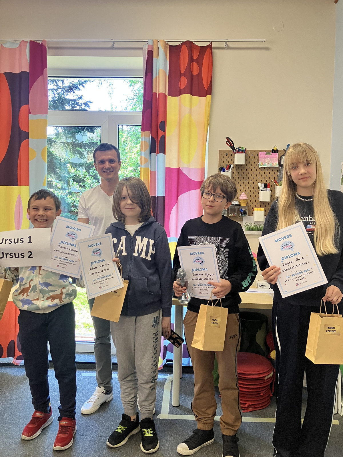 Na angielski dla dzieci i młodzieży w Warszawie w dzielnicy Ursus zapraszamy przedszkolaków i uczniów w wieku 3-19 lat. Naszych kursantów dzielimy na cztery grupy wiekowe, które różnią się również stopniem zaawansowania: Kids (3-6 lat), Juniors (7-10 lat), Teens (11-14 lat) oraz Masters (15-19 lat). Wraz z kolejnymi etapami uczniowie nabywają nowych kompetencji przydatnych w XXI wieku oraz pogłębiają swoje zdolności językowe. Od kilkudziesięciu lat realizujemy swój cel, jakim jest osiągnięcie przez naszych uczniów niezależności językowej w wieku 14-15 lat oraz biegłości w wieku 17-18 lat! Działamy z pasją i zaangażowaniem, bazując na naszej nowatorskiej metodzie. Korzystamy z 12 sprawdzonych supermocy jak: autorskie materiały, spiralność, autonomia, krytyczne myślenie, kreatywność, komunikatywność, współpraca, humor, relacje, muzyka, rym oraz ruch. Dobrze wiemy, że dzieciom, zwłaszcza tym młodszym, ciężko wysiedzieć podczas 90 min zajęć, dlatego w naszej metodzie stosujemy: taniec, klaskanie, tupanie, podskoki, kalambury. Przeplatamy ćwiczenia statyczne z ruchowymi, żeby urozmaicić każdą lekcję i zaangażować w nią wszystkich uczniów. Nasz kurs angielskiego na Ursusie to FUN!